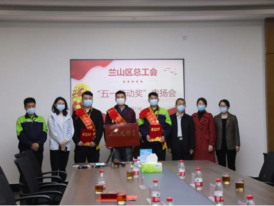 2022年5月11日,蘭山區總工會副主席趙玉啟、李炳娟主任等人到華星機械為在推動高質量發展中發揮了主力軍作用的工業園區的先進集體和個人頒發區工人先鋒號、五一勞動獎章,工業園區魏慧慧,華星機械黨委副書記崔士啟、華星機械工會主席高會芹陪同。